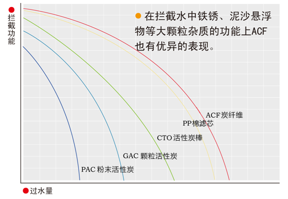 粉末活性炭(Pac)<顆粒活性炭(GAC)<活性炭棒(CTO)<PP<炭纖維(ACF)