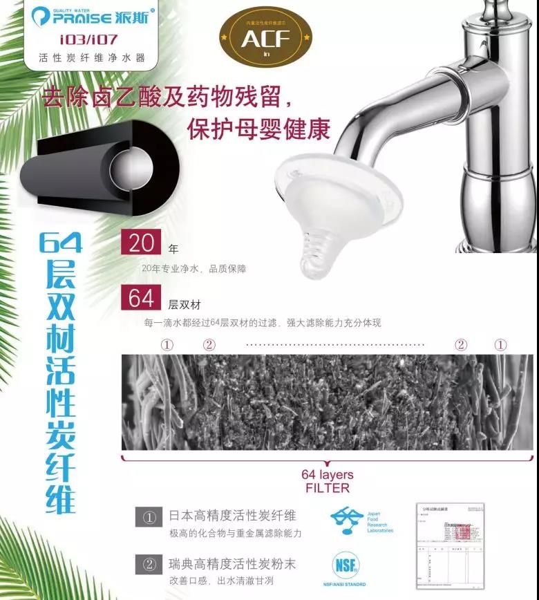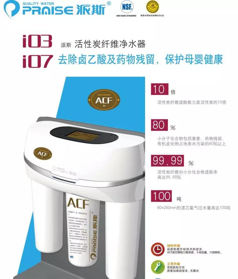 在這里,要強調,消毒副產物導致的是增加致癌風險!增加的是風險!是風險!是風險!重要的事說三遍!風險只是說明一個幾率,并不是說會一定發生,當然也不是一定不會發生。但沒必要恐慌,作為現代人,我們對于健康都是妥妥的把任何問題扼殺在萌芽之中的,比如,你可以選擇安裝派斯ACF(活性炭纖維)系列凈水產品,消毒副產物都不是問題!